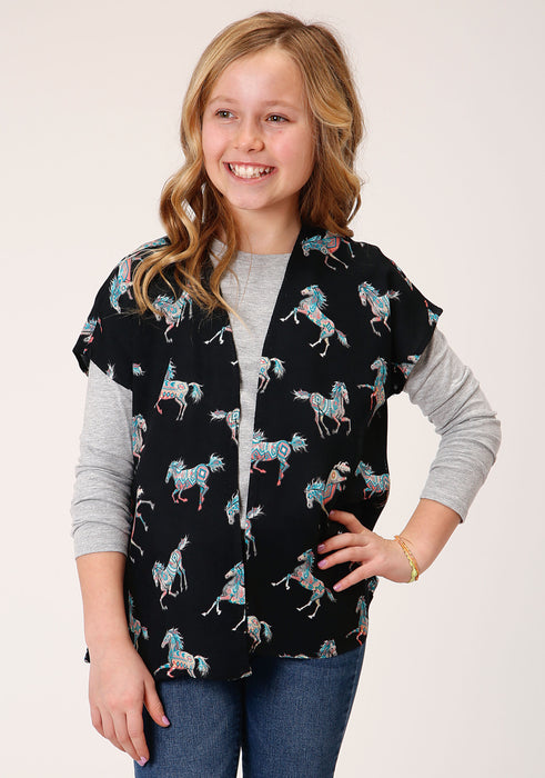 Girl's Wild Horse Printed Rayon Cardigan * Dolman Short Sleeve * Flowing Open Front * Garment Washed For Softness
