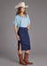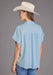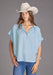 Women's Powder Blue Rayon Twill Collared Blouse * 1/2 Button Placket * Short Doleman Sleeves * Straight Front And Back Yokes With Gathering Below Them * Shirt Tail Hem