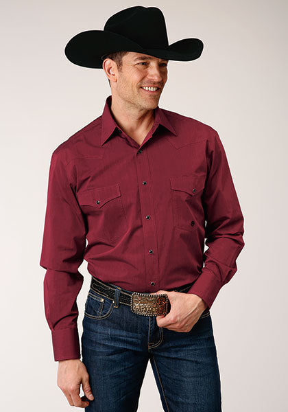 Men's Roper Solid Dark Red Western Shirt - Big & Tall