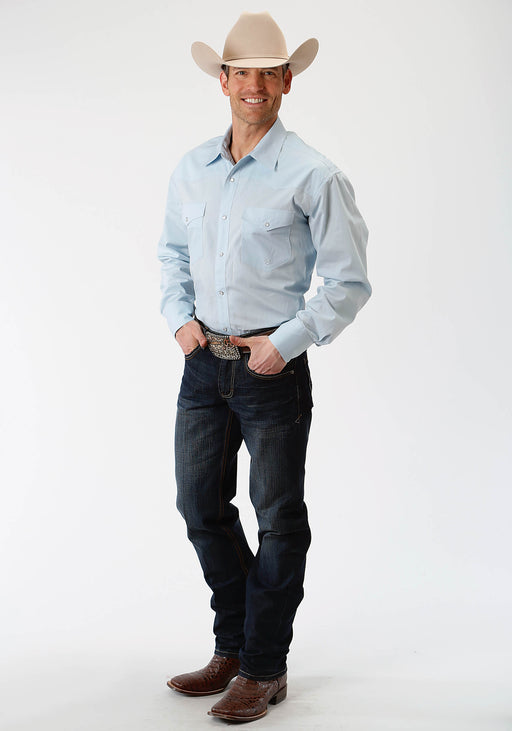 Mens Long Sleeve Poplin Shirt * Two Flap Snap Pockets * Roper "R" Embroidery On Pocket * Spread Collar * One Point Back Yoke * One Point Front Yoke...