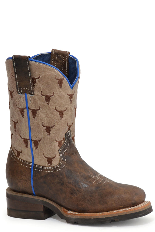 Boys Roper Vintage Brown Square Toe Boot w/ Steer Head Pattern