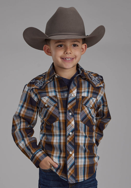 Boy's Roper Plaid Long Sleeve Western Shirt