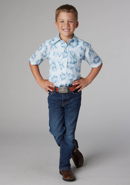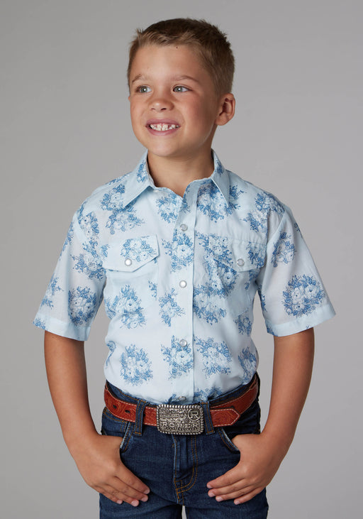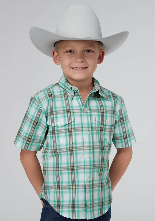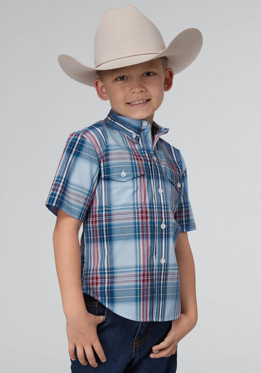 RoperBoys Short Sleeve Western Shirt * Snap Front * Spread Collar * 1 Point Back Yoke * 2 One Point Pockets & Flaps * Roper "R" Embroidery