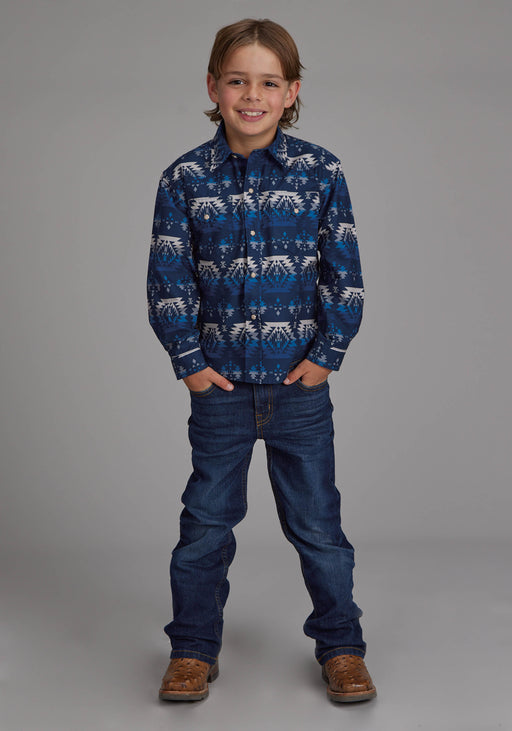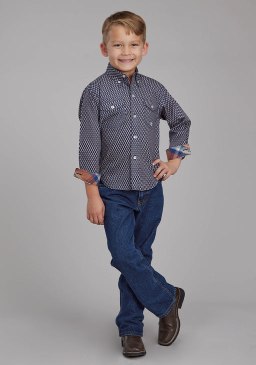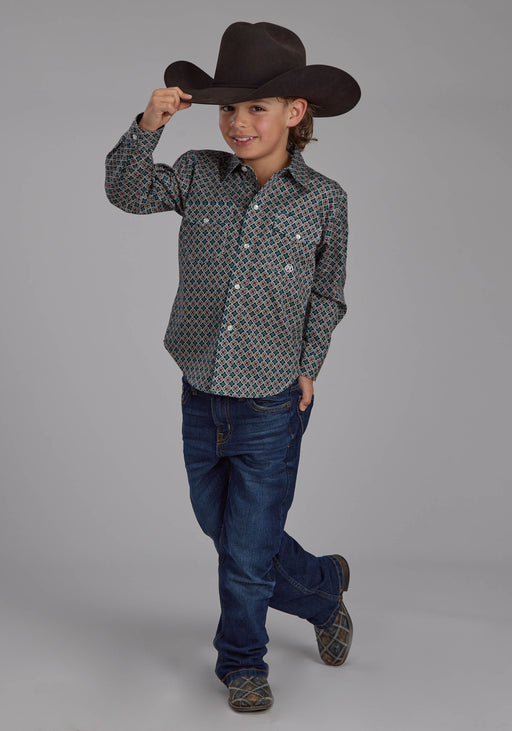 RoperBoy's Long Sleeve Western Style Shirt * Standard 1 Pt Front & Back Yokes * Patch Pockets & Flaps * Cotton/Poly Fabric Printed With Allover ...