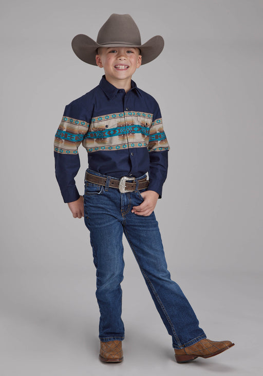 Boy's Roper Border Stripe Long Sleeve Western Shirt