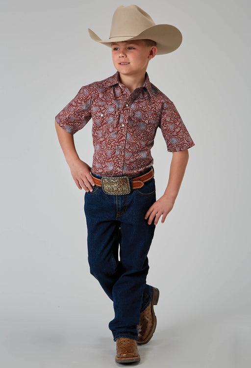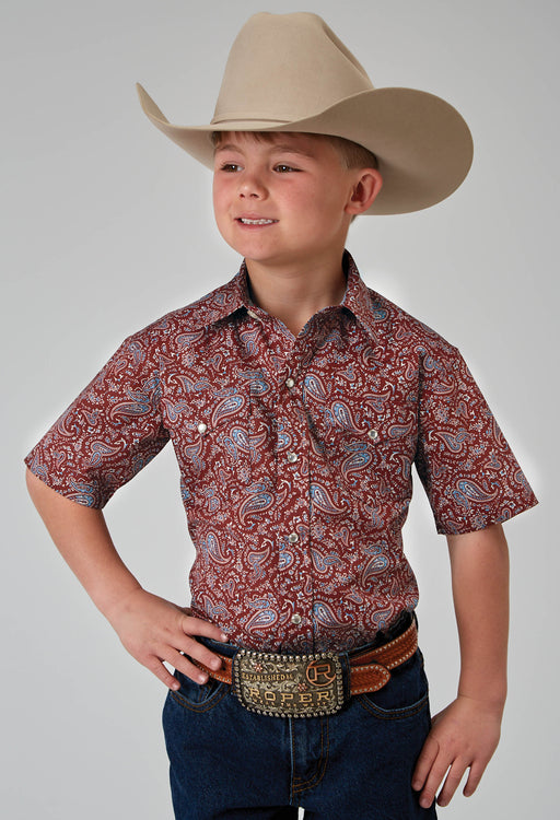 RoperBoys Short Sleeve Western Shirt * Snap Front * Spread Collar * 1 Point Back Yoke * 2 One Point Pockets & Flaps * Roper "R" Embroidery