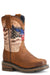 Boys Roper Oiled Tan Square Toe Boot w/ American Flag & Skull