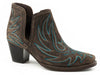 Brown Sanded Leather With Western Stitch Design * Open Sided Bootie * Single Welt * Padded Insole For Added Comfort * Snip Toe Bottom *