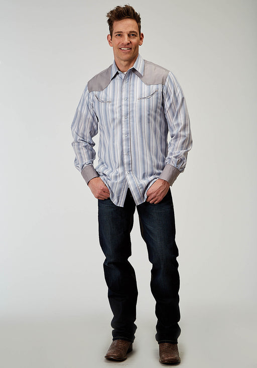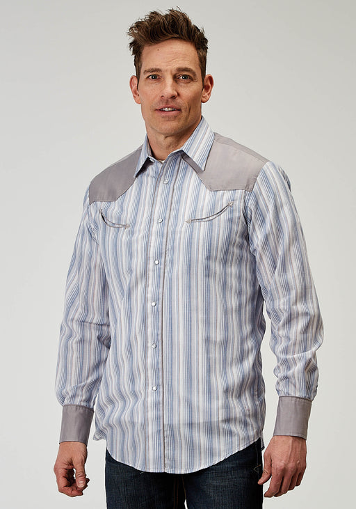 RoperMen's Long Slv Shirt * Engineered Border Stripe * Cotton/Poly Broadcloth * 1 Pt Front & Back Yokes * Welt Pockets W/1 Pt Flaps * 3 Snap Cuff