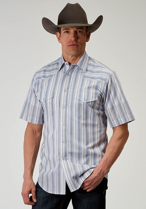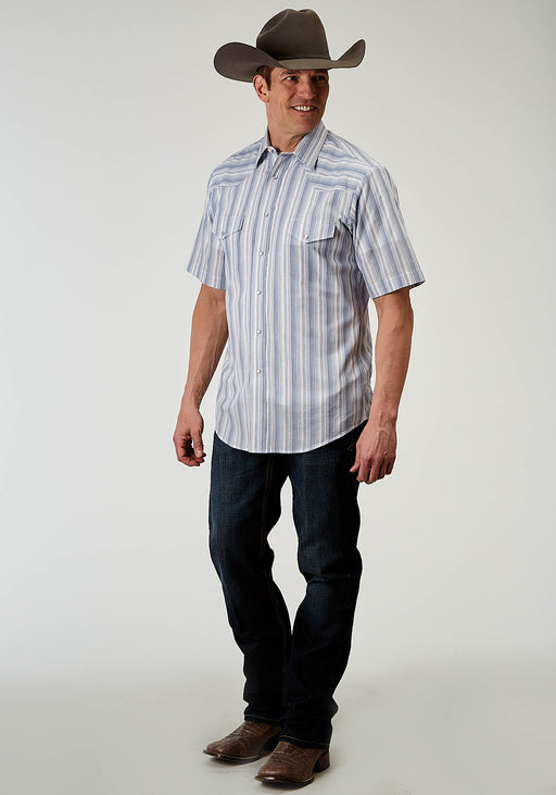 RoperMen's Short Sleeve Western Style Shirt * Standard 1 Pt Front & Back Yokes * Patch Pockets & Flaps * Striped Cotton/Poly Broadcloth