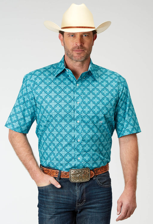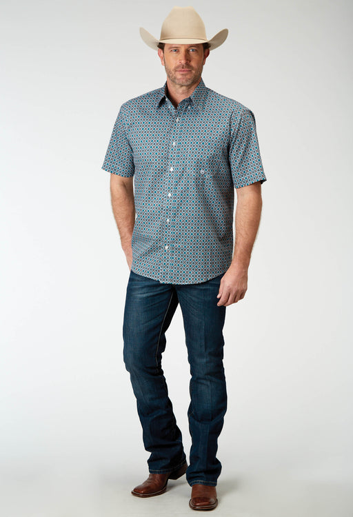 StetsonWomen's "Indigo Serape" Prt Rayon Twill Mid Length Dress * Fold Dn Collar W/Full Length Hidden Btn Placket Closure * 3/4 length Slvs W/Gathers &...