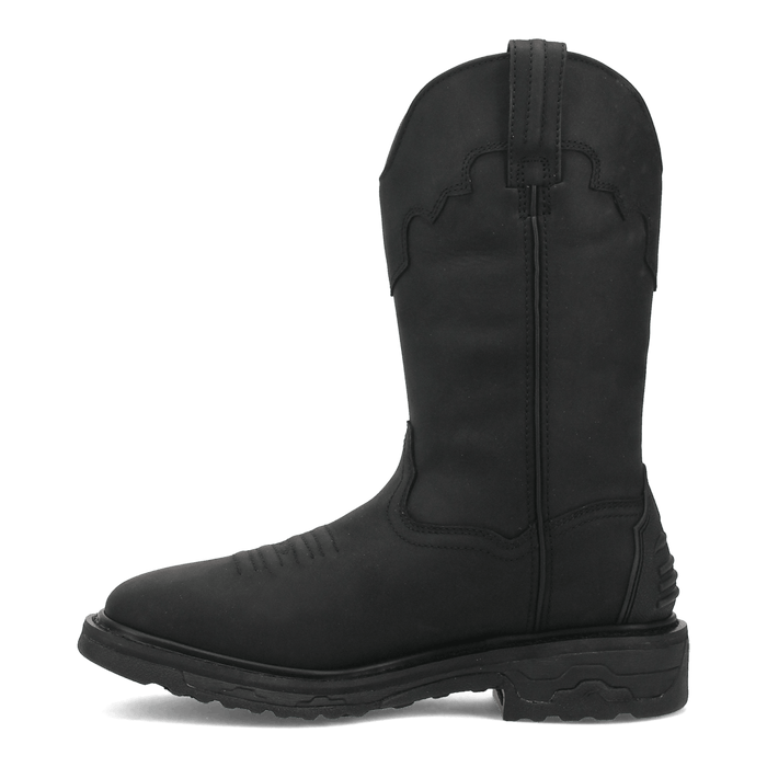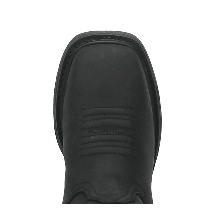 The Blayde is your go-to western work boot for comfort and durability. Crafted with premium black leather. Keep your foot dry with the waterproof membrane bootie. Featuring the Dan Post DPC Comfort System that with a Removable Orthotic that’s breathable, anti-fungal, anti-microbial and machine washable. Also features a broad square toe and an Ultra Light heat, oil and slip-resistant outsole.