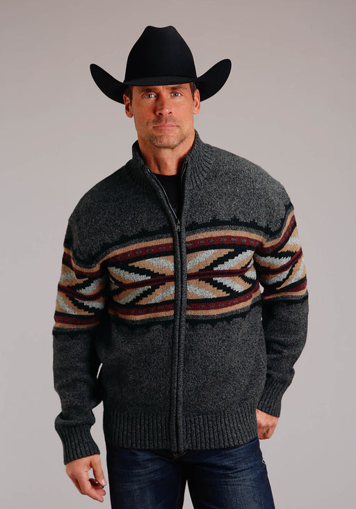 StetsonStetson Horizontal Arrow Border Cardigan * Wool Blend Sweater * Heathered Yarns * Zip Front * Self Knitted Collar, Cuffs, & Waistband * Beautif...