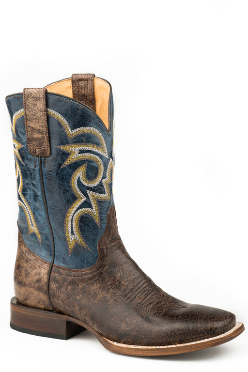 RoperDark Brown Vamp With Saddle Vamp & Vintage Tan Shaft With Pull Holes * Western Stitch Design On Shaft * Flexible Bottom * Wide Square Toe *