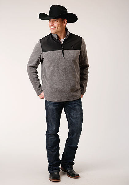 RoperMen's Micro Fleece Pullover * Stand Up Collar * 1/4 Length Zip Front * Straight Front Yokes & 1 Pt Curved Bk Yoke Pieced W/Nylon * Reflective Z...