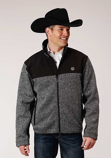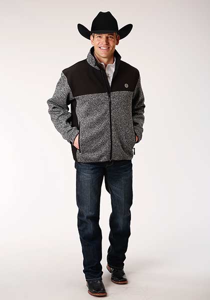 RoperCharcoal Heather Sweater Knit Pieced W/Solid Black Soft Shell * Zip Front * Stand Up Collar * Zippered Front * Front Welt Zippered Pockets * Poly I...