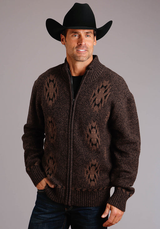 Men's Stetson Brown Vertical Aztec Wool Blend Sweater