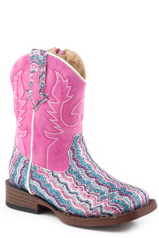 Girl's Roper Pink Multi Glitter Western Square Toe Boot