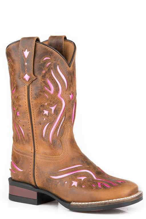 Girl's Roper Brown & Pink Western Square Toe Boot