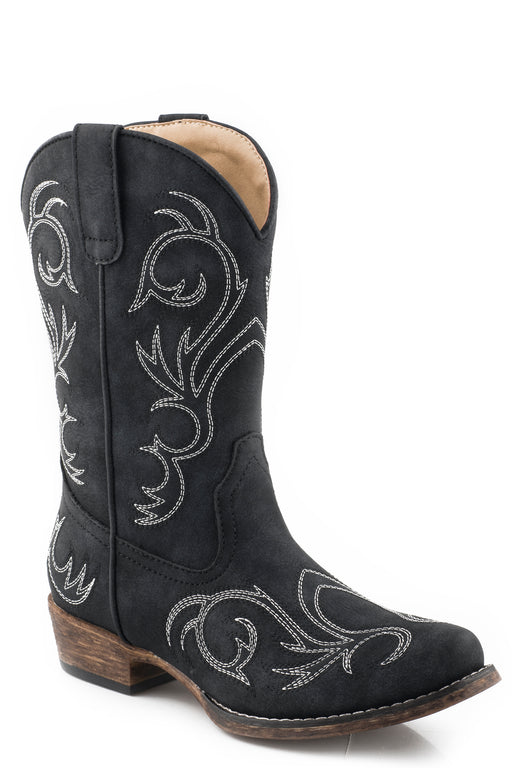 Girls Roper Vintage Brown Faux Leather Snip Toe Boot w/ All Over Embroidery