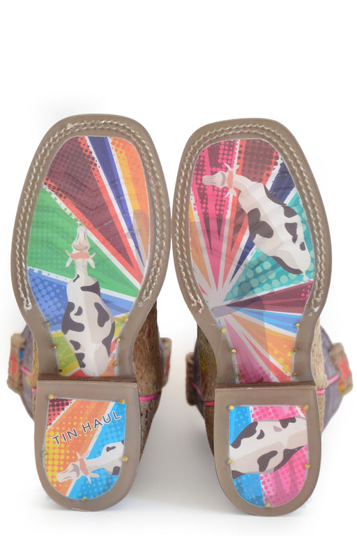 RoperWide Square Toe * Quality Faux Leather Materials * Faux Leather Bottom * Padded Insole For Added Comfort * Tan Upper With Pink Glitter Underlay *