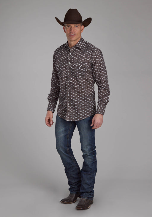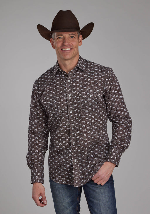 RoperMen's Long Sleeve Western Style Shirt * Standard 1 Pt. Front & Back Yokes * Patch Pockets & Flaps * Cotton/Poly Fabric Printed With Allover...