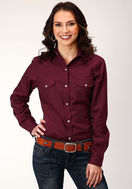 RoperLadies Long Sleeve Western Style Shirt * 1 Pt Back Yoke * Solid Cotton/Poly Broadcloth Body *Roper, Poly Cotton, SNAP SOLID COLOR BROADCLOTH