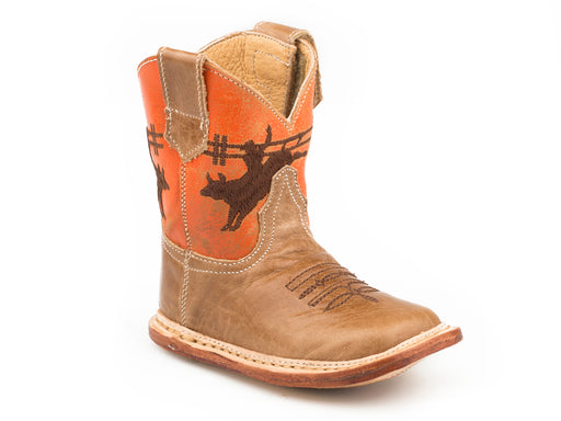 Roper "Cowbabies" Tan Leather Infant Boot w/ Embroidered Orange Shaft