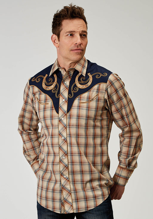 Men's Roper Plaid Long Sleeve Western Shirt w/ Embroidery