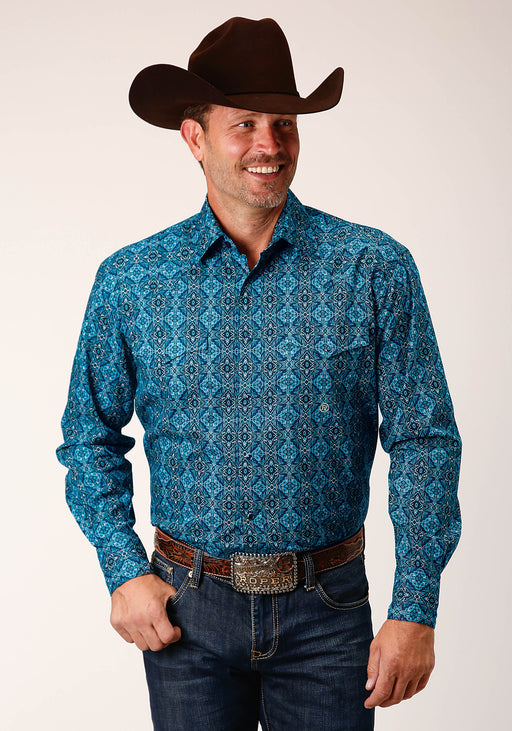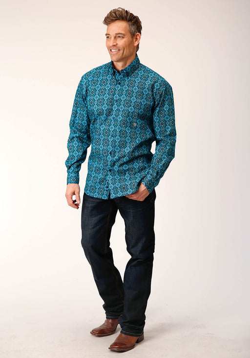 Men's Roper Turquoise Diamond Print Western Shirt