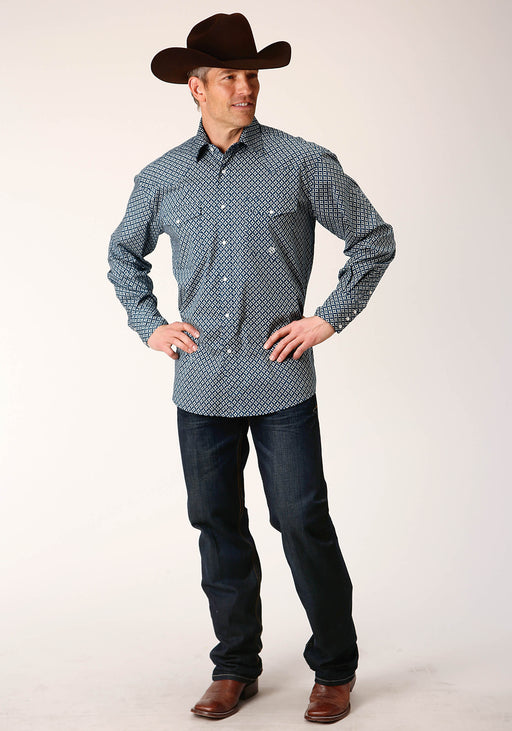 Men's Roper Navy Diamond Print Western Shirt