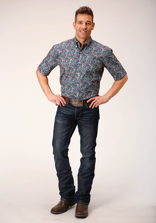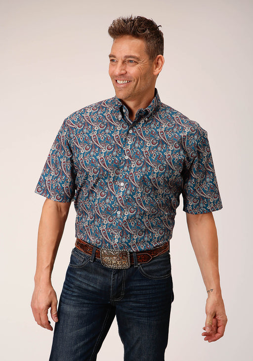 RoperMen's Short Sleeve Shirt * Bttn Dn Collar * Straight Back Yoke W/Pleat & Locker Loop * 1 One Point Open Pkt * Roper "R" Embroidery