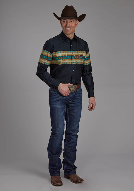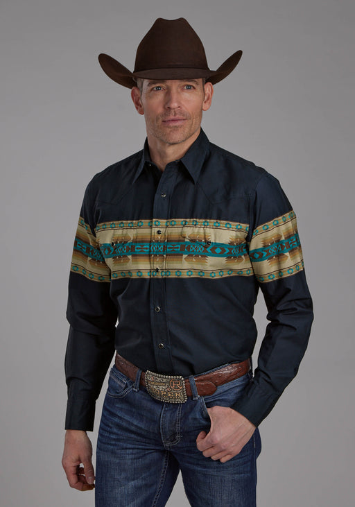 RoperMen's Long Sleeve Vintage Style Shirt * 100% Cotton Poplin * Aztec Border Print * 1 Pt Ft Yokes * 1 Pt Curved Bk Yoke * Welt Pockets W/1 Pt Flaps *...