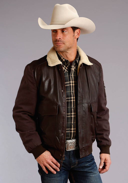 Men's Stetson Dark Brown Bomber Style Leather & Canvas Long Sleeve Jacket