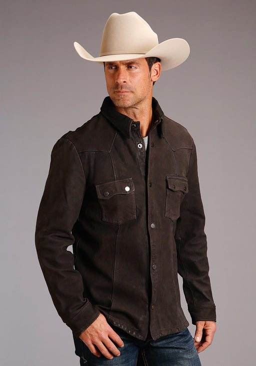 StetsonMen's Vintage Brown Leather Snap Front Collared Shirt Jacket * Single Point Front And Back Yokes * Single Point Patch Pockets With Saw Tooth Double...