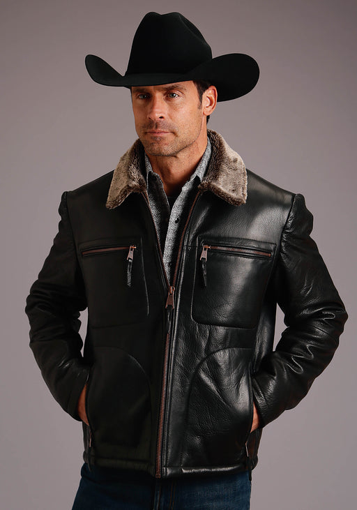 Men's Stetson Black Leather Jacket w/ Faux Fur Collar