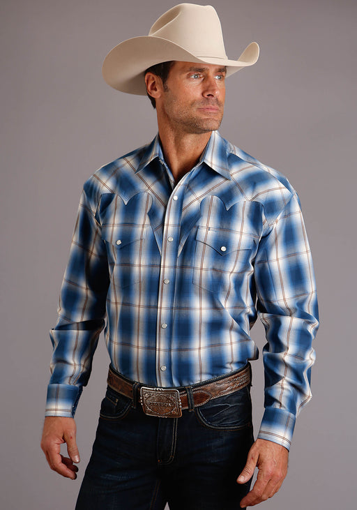 Men's Stetson Granite Dobby Plaid Western Long Sleeve Shirt