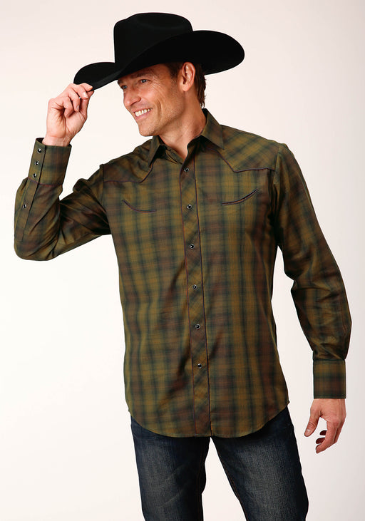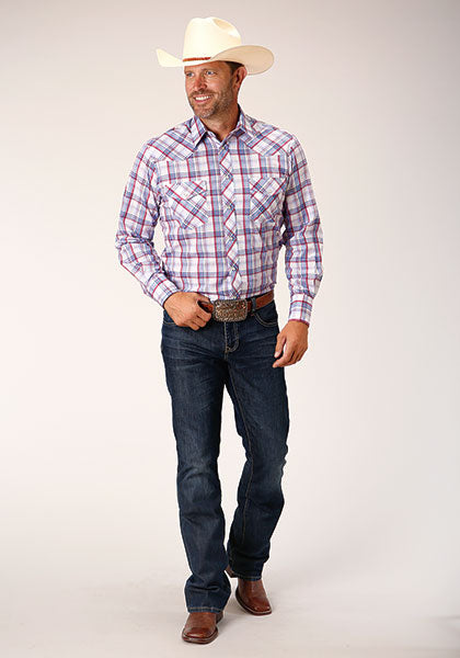 RoperMen's Long Sleeve Western Style Shirt * Standard 1 Pt. Front & Back Yokes * Patch Pockets & Flaps * Cotton/Poly Plaid YD Fabric * 3 Snap Sh...