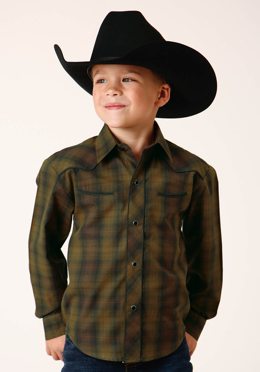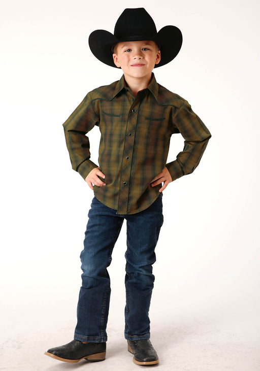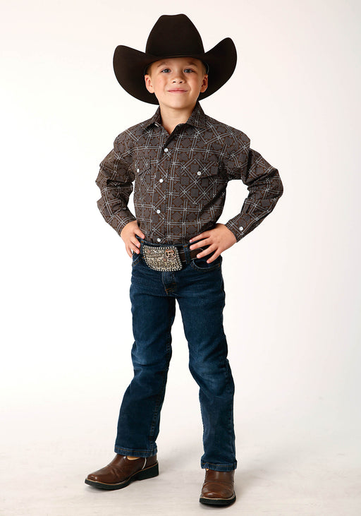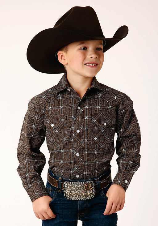 RoperBoy's Long Sleeve Western Style Shirt * Standard 1 Pt Front & Back Yokes * Patch Pockets & Flaps * Cotton/Poly Fabric Printed With Allover ...