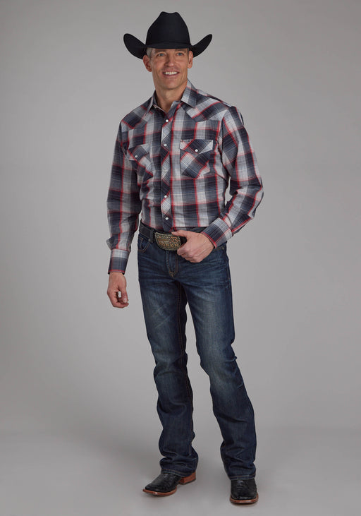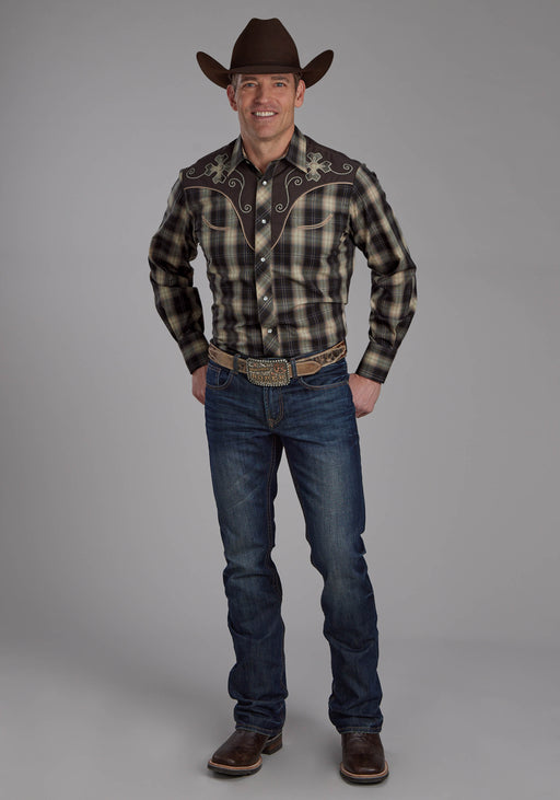 Men's Roper Plaid Long Sleeve Western Shirt w/ Embroidery