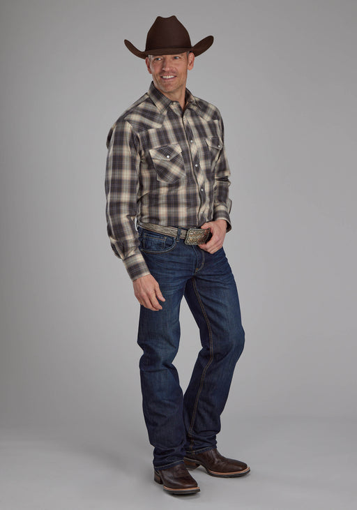 Men's Roper Neutral Plaid Long Sleeve Western Shirt