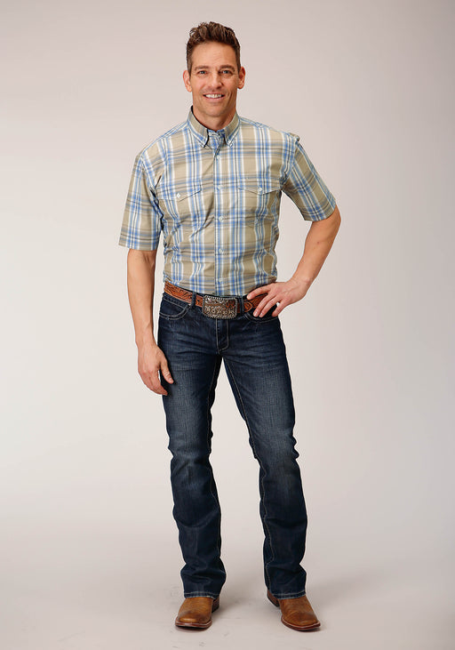 RoperMen's Short Sleeve Shirt * Bttn Dn Collar * Straight Back Yoke W/Pleat & Locker Loop * 1 One Point Open Pkt * Roper "R" Embroidery
