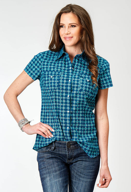 RoperWomen's Short Sleeve Shirt * Allover Print On 100% Cotton Poplin * 1 Pt Curved F/B Yokes * Shaped 1 Pt Pockets & Flaps * Pearl Snap Front * Wai...