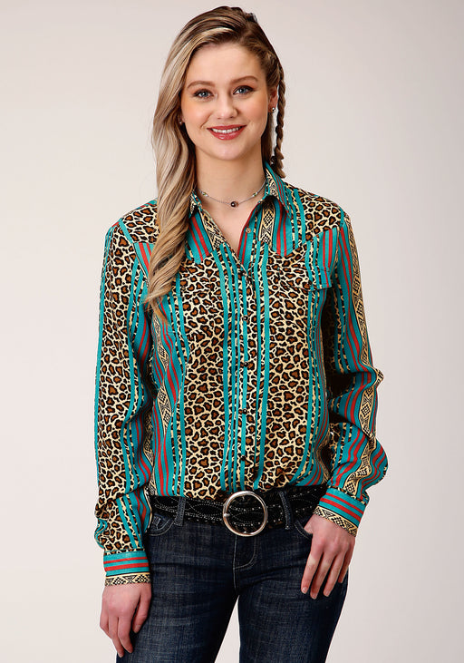 RoperWomen's Leopard Stripe Printed Rayon Western Blouse * Long Sleeve Boyfriend Fit With Front And Back Yokes * 1 Point Pockets/Flaps * Double Needle S...