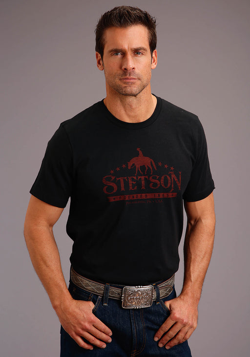 StetsonMen's Black Short Sleeve Jersey T-Shirt * Crew Neck W/Rib Knit Collar Band * Garment Washed For A Super Soft Hand * Cover Stitched Hem * Rust Red "...