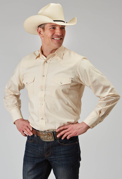 Men's Roper Solid Tan Long Sleeve Western Shirt
