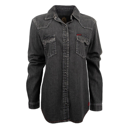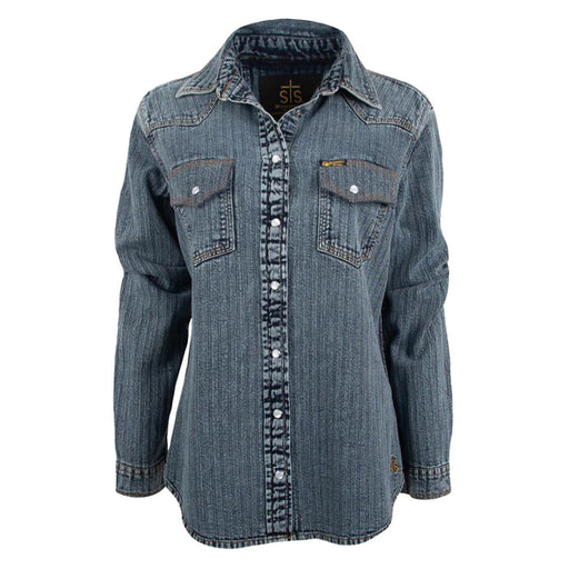 STS RanchwearFeatures: Classic Western-style denim shirt Iconic Western yoke accents Pearl snap-front closure for a timeless look Two chest pockets with flap a...