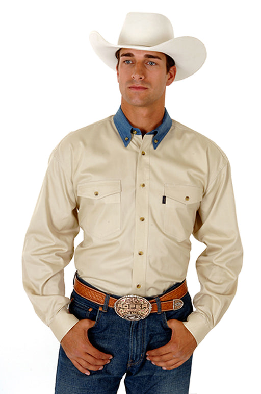 Men's Roper Solid Khaki Western Shirt w/ Denim Collar