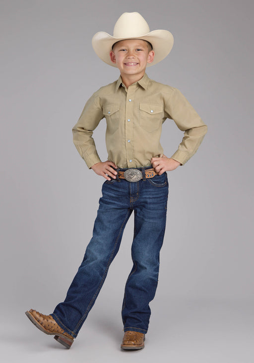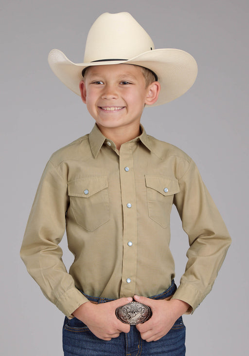 Boy's Roper Solid Tan Long Sleeve Western Shirt