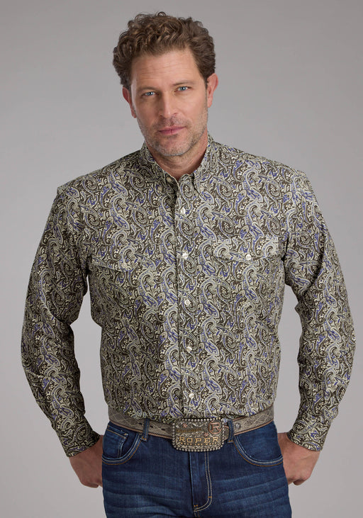 Men's Roper White & Black Paisley Long Sleeve Western Shirt - Big & Tall